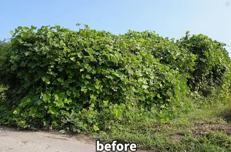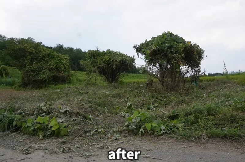 つる草が氾濫したジャングルのような場所の草刈りは、