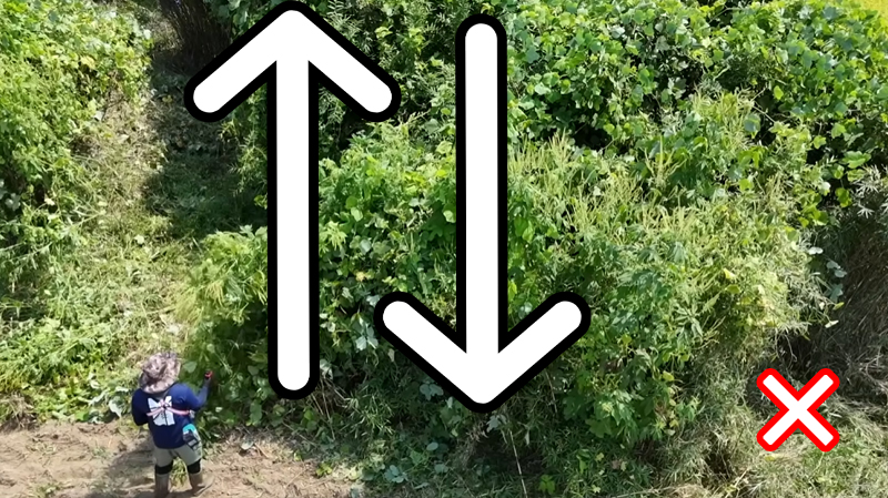 無理に機械を振り上げずにこちらで刈ってください。