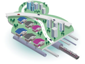 都市計画において工場地域、住宅地域などのエリアを分割することや、