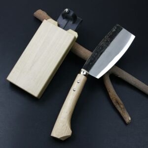東周作 極上 枝打鉈 おたふく型500g 青紙鋼 鞘付き