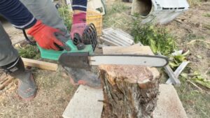 チェーンソーが暴れてやはり危険です。