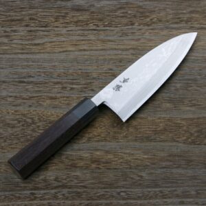 重勝 出刃包丁 片刃 165mm 白紙鋼 鋼付 積層鋼 八角紫檀柄