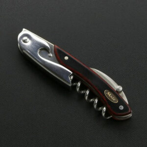 木目とワインレッドの色合いが美しい日本製のソムリエナイフです。