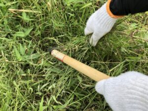 しかし鎌の用途は草刈り、草の中には硬い物や、