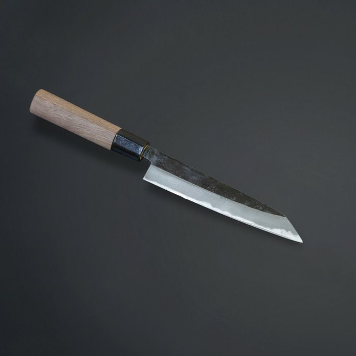 5. 切付柳刃包丁 両刃 150mm青紙2号 割込み 黒打ち仕上げ クルミ柄