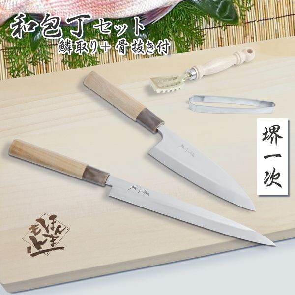 家庭用のおすすめ和包丁セット! 堺一次 ステンレス 柳刃210mm+出刃150mm&骨抜き/うろこ取りセット
