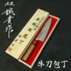 4. 誠貴作 春風 和牛刀 両刃 180mm 粉末ハイス積層鋼 ダマスカス模様 水牛八角ウォルナット柄 木箱入り
