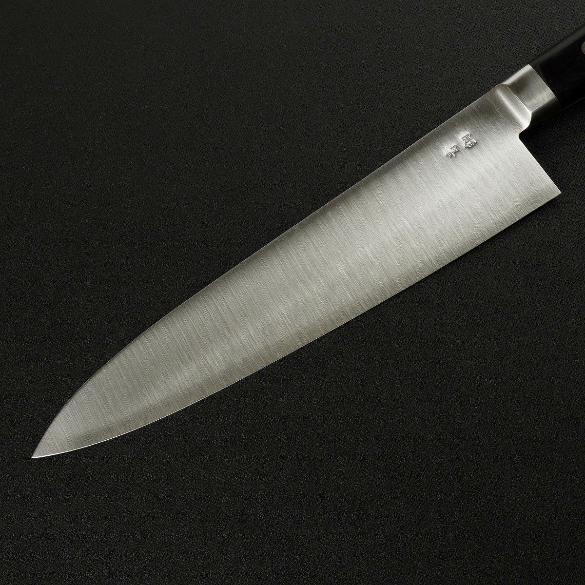 播州の包丁鍛冶の鍛造火造り品。刃に使われているV金10号はサビに強く、鋭い切れ味が永切れする、家庭用包丁には理想的な素材を用いた牛刀です。