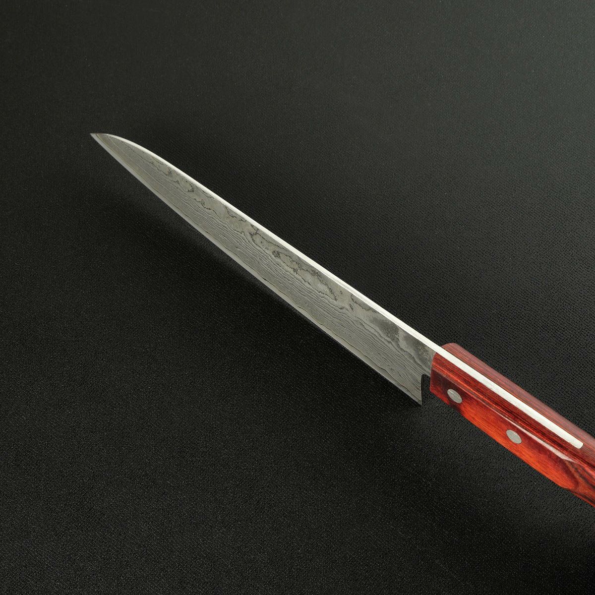刃渡り:180mm~270mm程度がメイン。300mm以上の物もある。 刃の形状:刃先に向かって反っている。三徳包丁と比較し先端が鋭利。 適した食材:肉、野菜、魚 こんな方におすすめ:プロの調理師さん、 日常的に肉塊など大きな食材を使用する料理が好きな方、道具にこだわる方