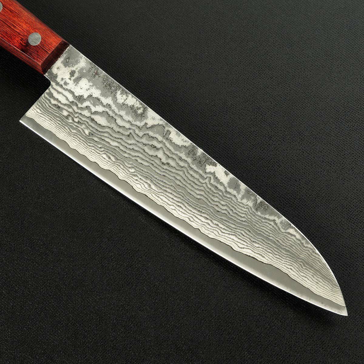 牛刀 両刃 180mm V金10号 ステンレス ダマスカス模様 共口金付き