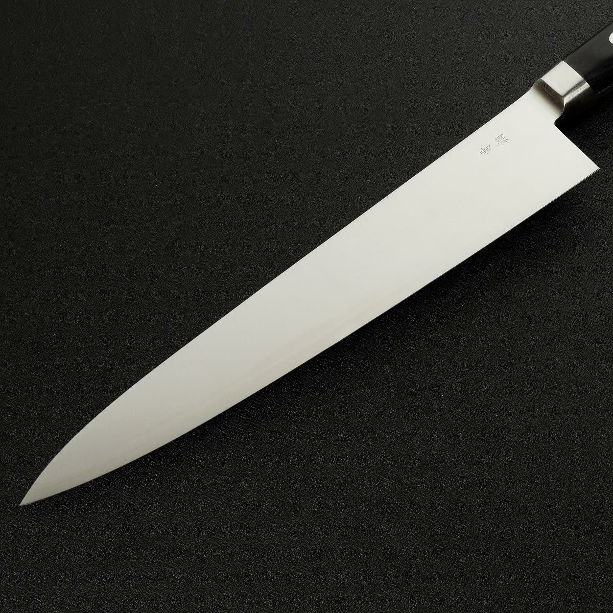 筋引きは、牛刀を細くしたような形状で、大きな肉を筋に沿って切り分け、筋の無い部分だけを切り出すといった作業に向いています。