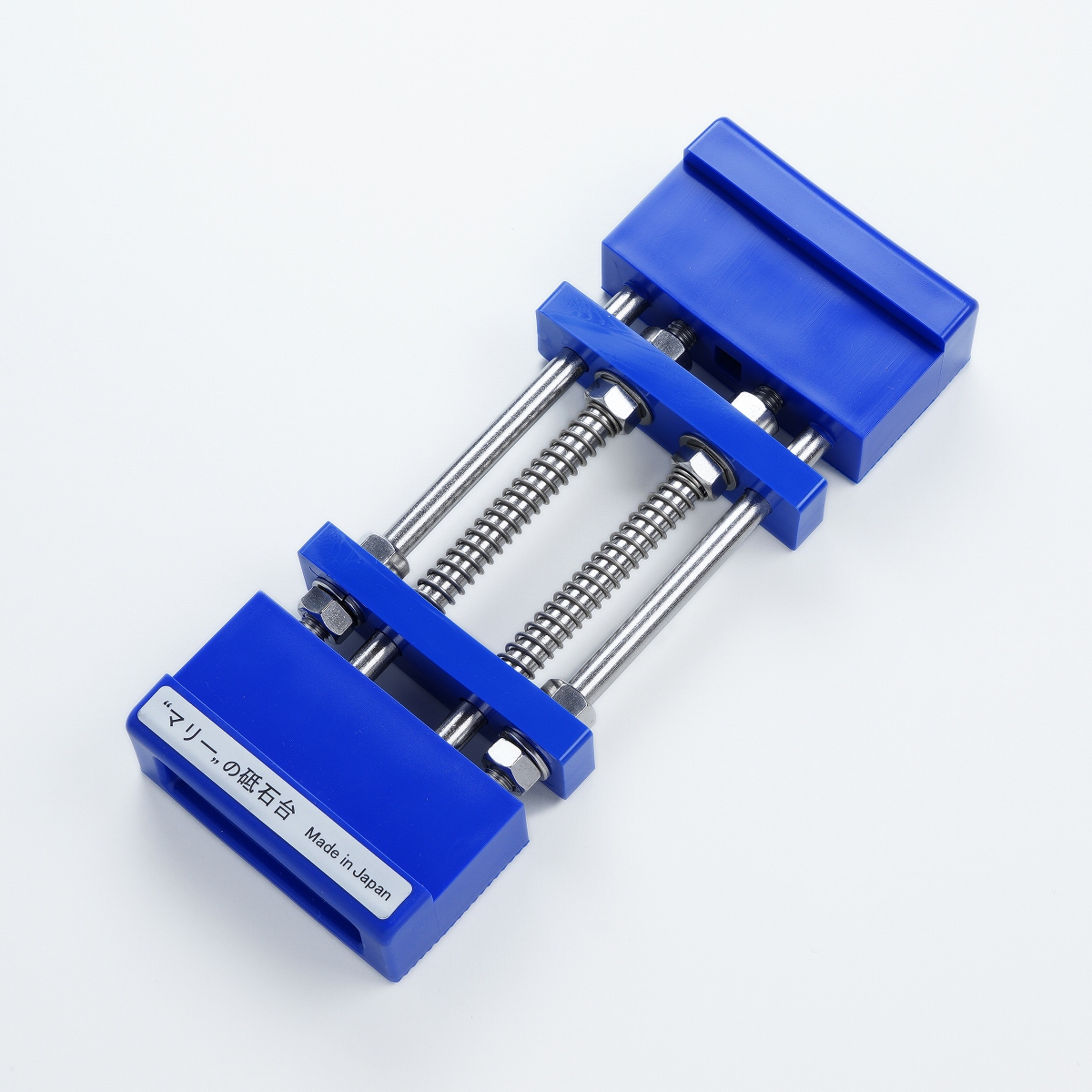 • ①砥石台の2支点の下を持ち、親指と中指で挟みます。