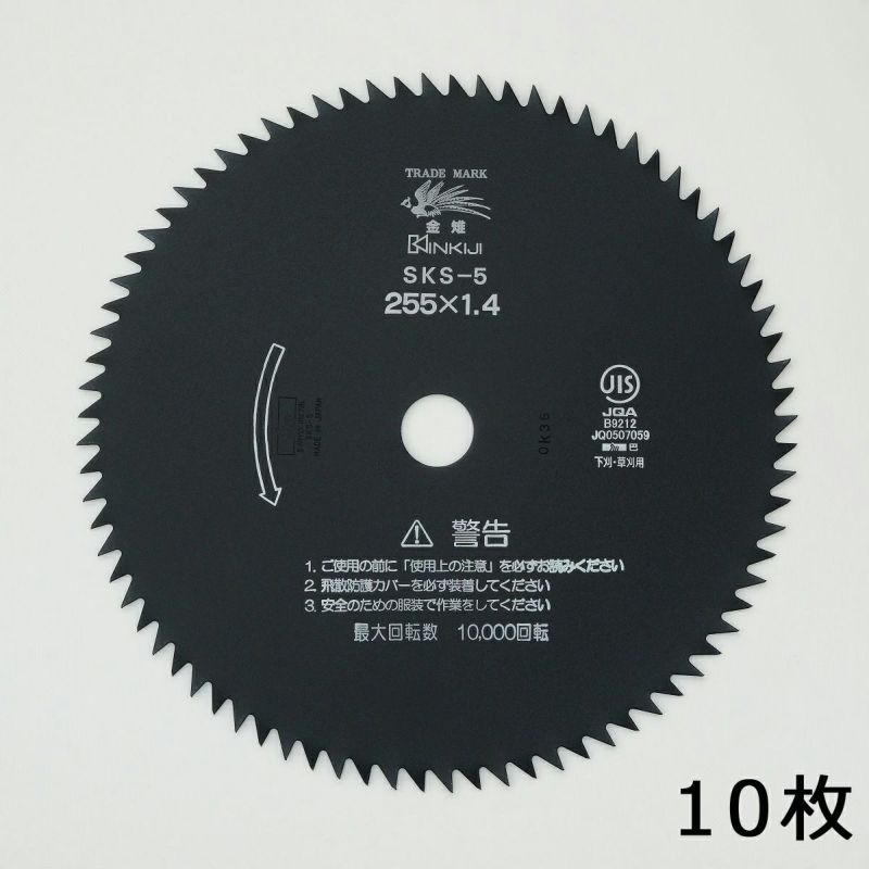 信頼品質の日本製刈払刃 下刈用 刈払刃 80枚刃 SKS-5 黒255×1.4 10枚セット