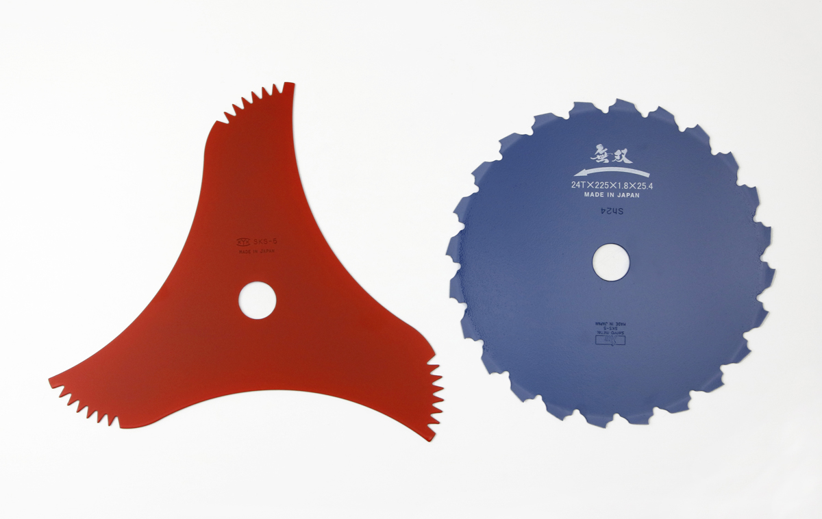 4. 特厚 山林用 刈払刃 3枚刃 赤マット仕上 SKS-5 305×3P 厚み1.85mm & 無双 つる草の達人 225mm×24P 各1枚 セット