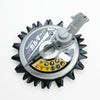 ラジオペンチもしくはスナップリングプライヤーを使用し、底板止め金具を外すだけで上下刃が簡単に取り外しができる画期的な構造です。本体は分解可能で内部のギヤ交換・修理が簡単です。