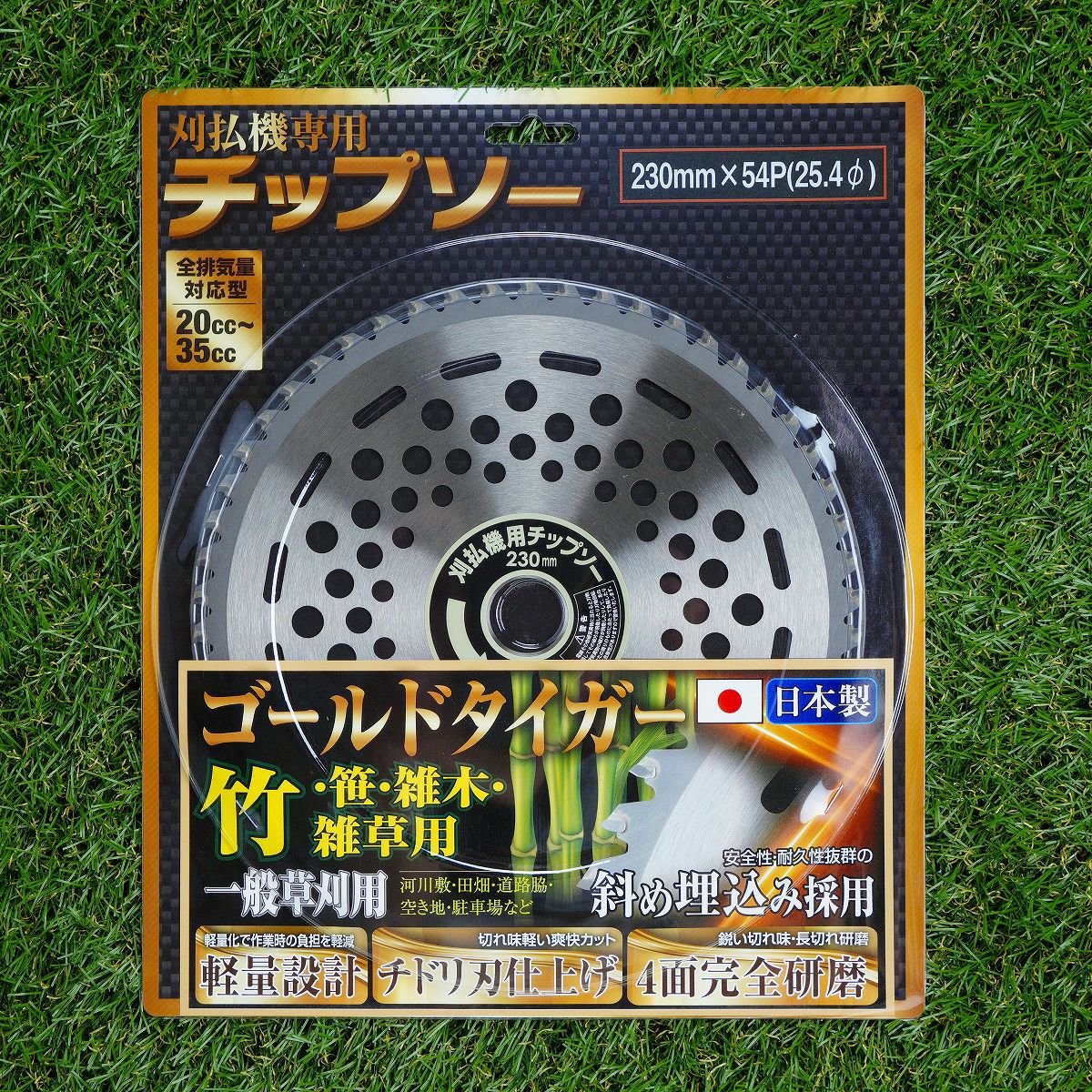 他の画像を見る 安全性・耐久性抜群の斜め埋込採用! 刈払機用 チップソー ゴールドタイガー230mm×54P 10枚組 まとめ買い山林・一般草刈用 送料無料 当店特別価格 ¥ 34,500 税込 カートに入れる お気に入りに登録する