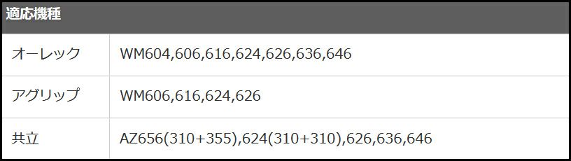 WM606,WM616,WM624,WM626 | AZ624(310+310),AZ626, AZ636,AZ656(310+355), AZ603(4枚Wナイフ) |