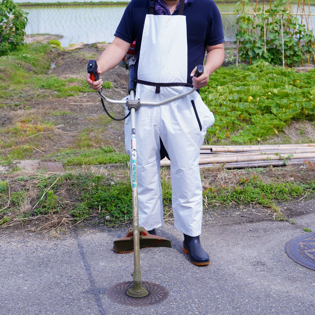 ![]() 飛散物や草汁からあなたの身体を守ります。 |