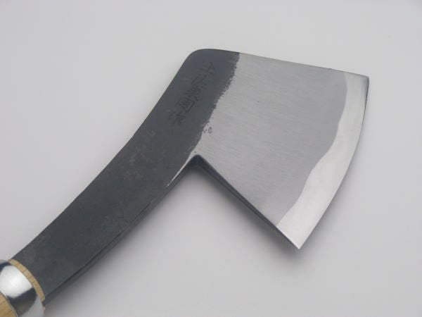 蹄の先端部分のV字に分かれた間を、削蹄する場合に使用する斧タイプの鉈です。 切削力が高く、分厚い蹄も厚く切り落とせます。