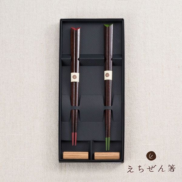 美しく上質な日本製のお箸 えちぜん箸 箸置き付 夫婦箸 仲良し