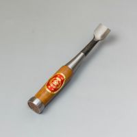 がっちりしたノミです。形も重さも、彫刻刀などとは格段に違います。曲がってはいますが、がっちりした木を削って食い込みもよく最適です。特殊なノミなのでいつも使うわけではありませんが、研ぎは天然砥石のコッパを丸めるか1つ犠牲にするか、何か工夫しようと思います。 -