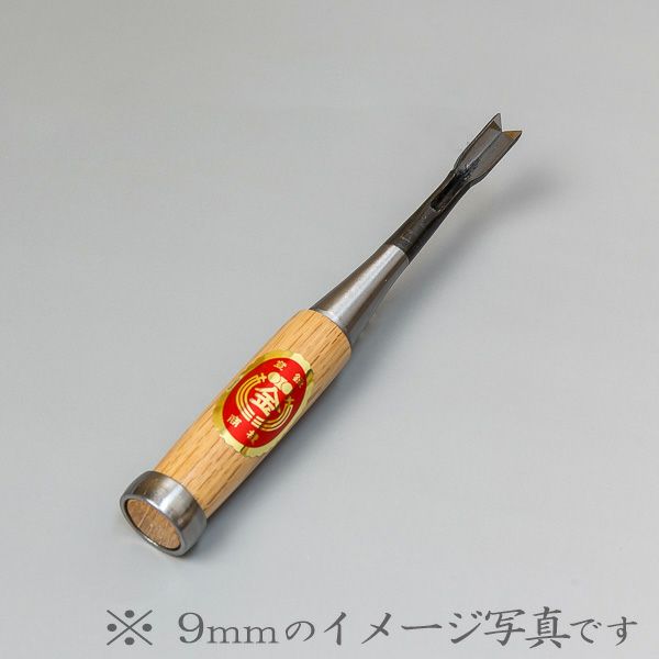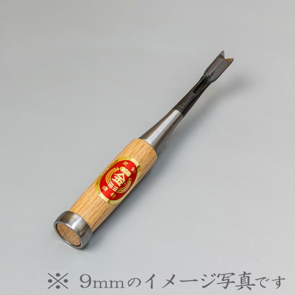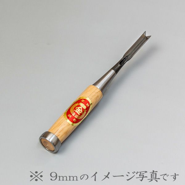 本職用 高級木彫りのみ 三角曲り9mm 白紙鋼 赤樫柄