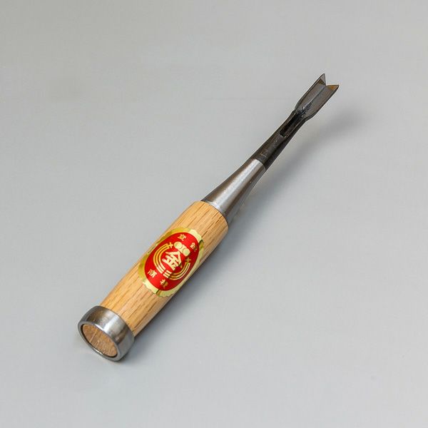 本職用 高級木彫りのみ 三角曲り12mm 白紙鋼 赤樫柄
