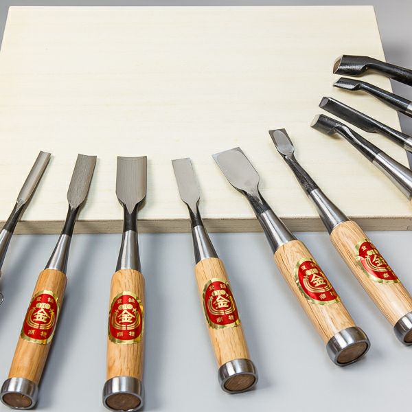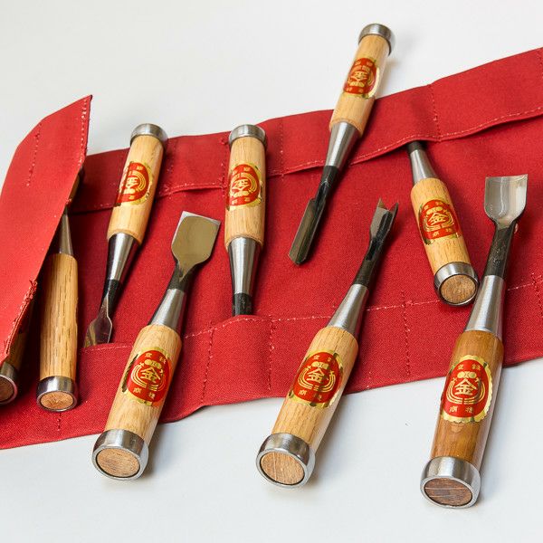 本職用 高級木彫りのみ 赤樫柄 白紙鋼 鑿巻き 10本組